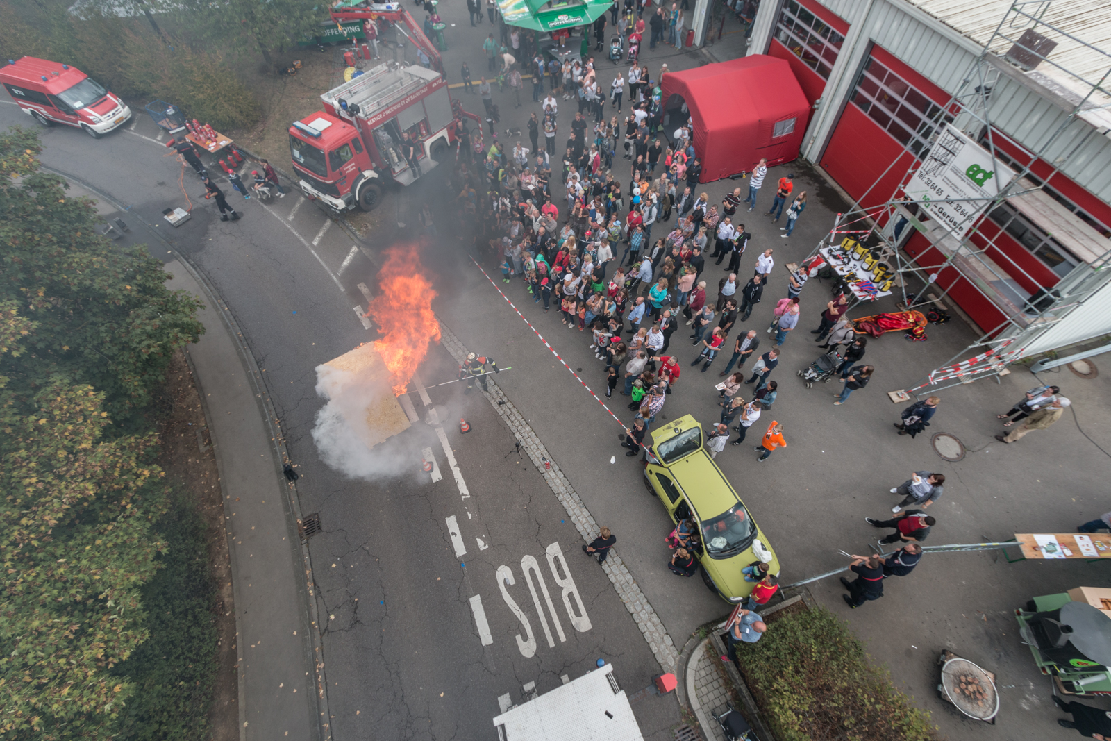 Der Nachmittag stand ganz im Zeichen von Vorführungen. Hier wurde vor allem viel Wert auf Prävention gelegt. Sei es bei dem Auslösen von Airbags, mit seinen Auswirkungen auf nicht angeschnallte Fahrer oder etwa bei Löschversuchen mit Wasser bei Fettbränden.