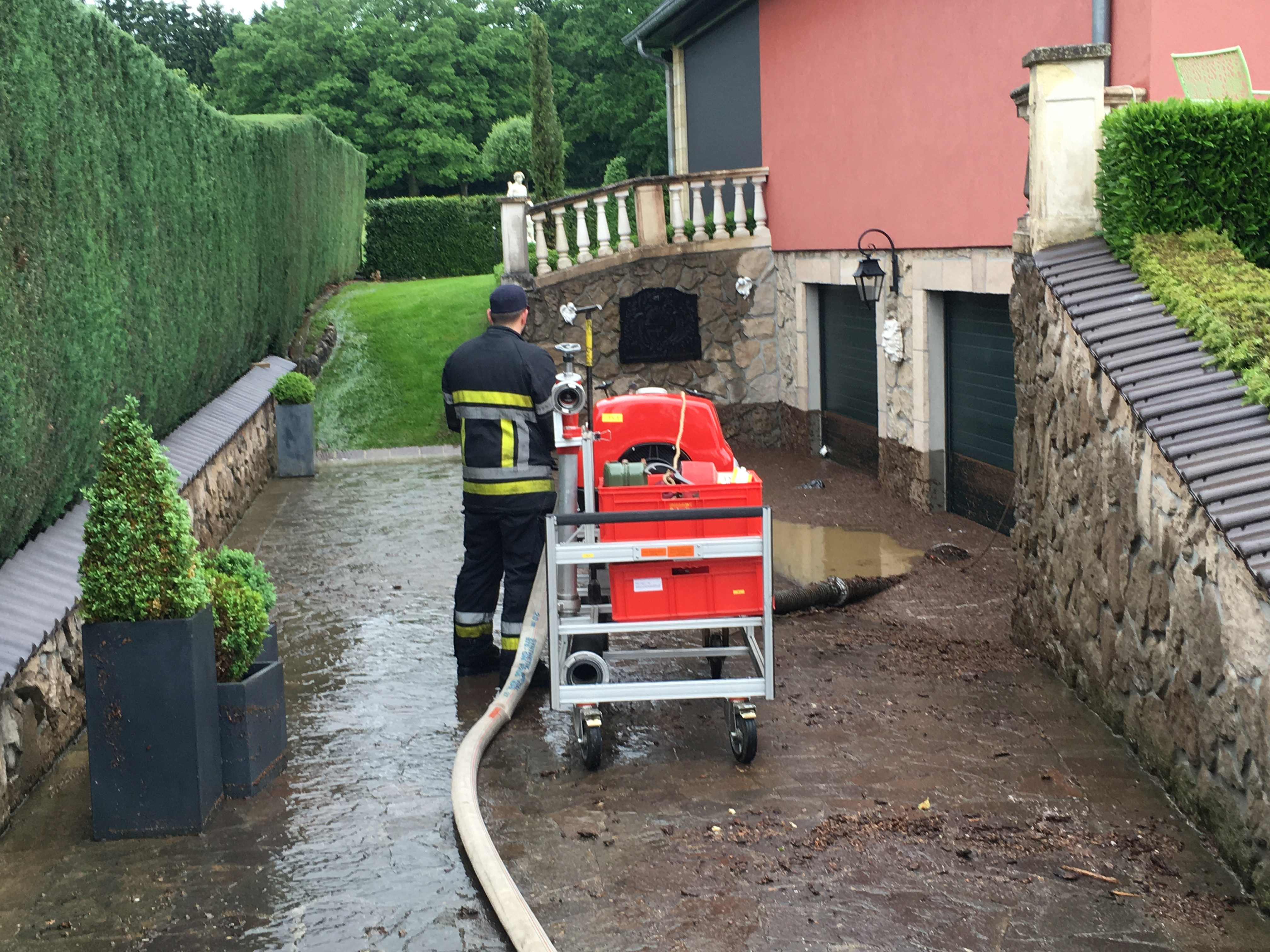 Gegen Mittag kam es in der « Prenzewiss » Strasse in Petingen zu mehreren Überschwemmungen von Einfamilienhäusern. Sofort wurde wegen der massiven Wassermassen Verstärkung der Petinger Wehr nachgefordert. Mehrere Pumpen wurden eingesetzt und mehrere Kanaldeckel geöffnet um die Wassermassen in die Kanalisation abzuleiten.